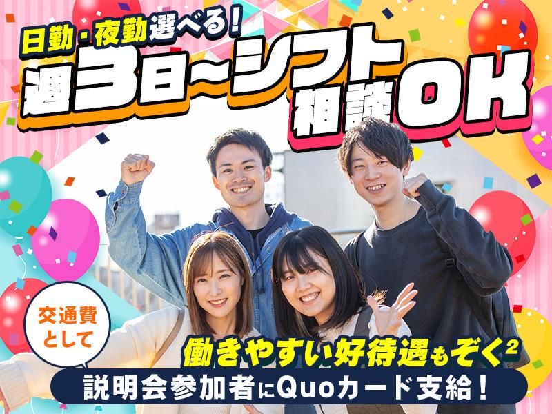 <履歴書不要>週3日~OK★日勤・夜勤選べる!社員食堂アリ◎