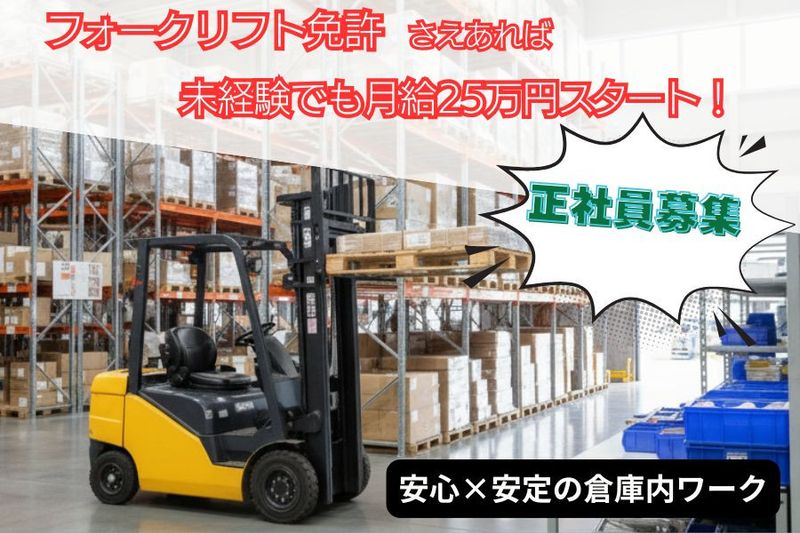 ✨フォークリフト免許✅未経験OK✅年齢学歴不問✅月給25万円✅週休2日制✅正社員