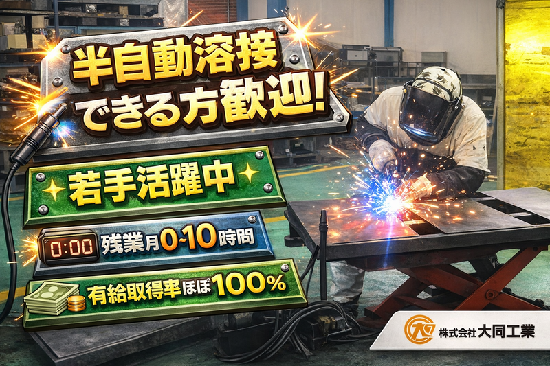 仕事内容 【半自動溶接ができる方歓迎】 \ 創業70年以上の老舗企業で安定 / ▶ 残業は月0~10時間と基本は定時退社 ▶ 有給取得率ほぼ100%! ╭━━━━━━━━━━━╮ ★当社のイチオシPOINT ╰━━━━━v━━━━━╯ ✨有給取得率ほぼ100%◀◀ ワークライフバランス◎の働き方が可能 ✨ボタン操作中心のラインもあるので 心配な方はそこからスタート! ✨定時退社の日も多数◀◀ 残業0~10時間(月)!仕事終わりも充実◎ ✨車・バイク・自転車通勤OK◀◀ 無料駐車場あり!お好きな通勤手段でOK! ✨創業70年以上の安定経営基盤◀◀ 大手メーカーがお取引先なので安定&安心 ⋆⸜未経験でも大丈夫⸝⋆ 大手メーカーの製品づくりに関わるお仕事  ̄V ̄ ̄ ̄ ̄ ̄ ̄ ̄ ̄ ̄ ̄ ̄ ̄ ̄ ̄ ̄ ̄ ̄ ̄ 主に建設現場のショベルやクレーンを 制作している会社です。 金属材料(鉄材料)を使って、 各種部品を製造しています。 ✅【溶接加工】┈┈┈┈┈┈┈┈┈┈┈┈ ・半自動溶接機械を使用した、 溶接、組み立てと仕上げ ・ロボット溶接機を使用した製品制作 上記の業務をメインにお任せします! まずは出来ることから始めましょう◎ *\徐々に仕事の幅を広げていける/* 他、下記業務もお任せします。 ▮金型メンテナンス ・プレス用金型の修理 ・工作機械で加工 ・板金 ▮プレス加工・ベンダー加工 ・金型の選定、設置 ・材料のセットと機械操作 ・成型加工後製品の取り出し ▮レーザー加工 ・NCデータ読み込み ・材料のセットと機械操作 ・切断加工後製品の取り出し ▷▷ 未経験も活躍できる理由の1つ! コツコツ作業好きにぜひ! ▷▷ 定着率&安定性 20代~ 歳を重ねても働いてくれている方多数! 定着率の良さに自信があります! 今後も安心の転職を当社でしませんか?? ◤ ̄ ̄ ̄ ̄☎⋆.✩ ̄ ̄ ̄◥ お電話でのご応募も歓迎 ℡/04-7196-8801 ◣__________◢