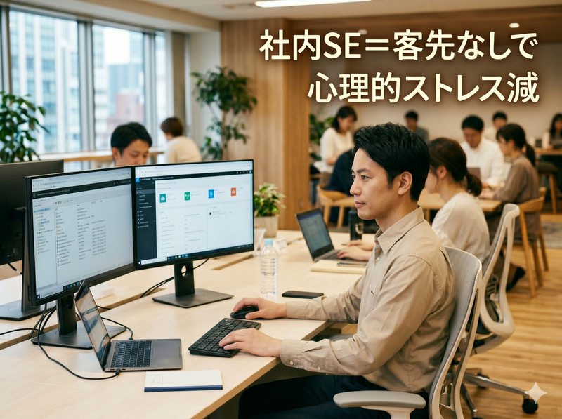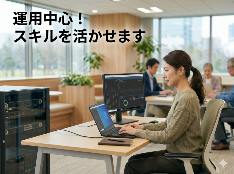 アピールポイント: ■安定環境で働ける社内SE■ 社内インフラを支えるポジション 外部監視ありでサポート体制◎ トラブル時も一人で抱えない環境 落ち着いた社内対応が中心です 長期的に安定して働けます ■運用メインで無理なく働ける■ 構築よりも運用・保守が中心 経験を活かして即戦力で活躍 PC設定やサーバ管理など幅広い業務 無理のない業務量で安心 スキルを着実に伸ばせます ■福利厚生充実で働きやすい■ 月給24万円以上で安定収入 年間休日110日でしっかり休める 農産物プレゼントなど独自制度あり 社員旅行やイベントも充実 長く続けやすい職場環境です