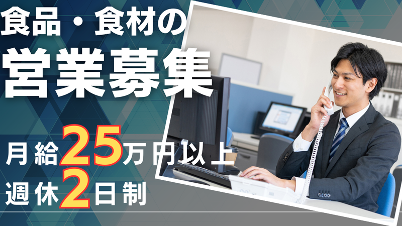 求めている人材 ★経験より人物を重視した採用!★ ★経験者歓迎!ブランクOK!★ 20代・30代活躍中! ・学歴不問! ・U・Iターン歓迎 《必須条件》 ・営業経験がある方 ・普通自動車免許(AT限定可) ・基本的なPCスキル(Excel、Word) 《歓迎する経験・スキル》 ・食品業界での勤務経験 ・法人営業の経験 《こんな方にピッタリ》 ・自ら積極的に仕事を取りにいける方 ・お客様に寄り添い、長期的に信頼関係を築きたい方 ・安定企業で腰を据えて働きたい方 ・自分でスケジュールを管理して働きたい方