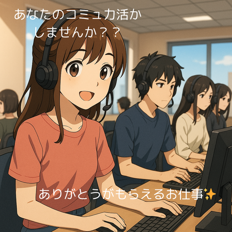 求めている人材 ・PCで文字入力出来ればOK!! ・未経験歓迎 ・資格不問 ・第二新卒歓迎 ・学歴不問!経験不問! *前職が、コールセンター、カスタマーサポート、テレアポ、 テレフォンアポインター、一般事務、営業事務 等の オフィスワーク経験者は経験を活かせます! *フリーターや主婦(夫)さん、ミドル・中高年世代など 20代、30代の幅広い世代が活躍中! 幅広い世代がそれぞれの希望・条件に“ピッタリ”の働き方で活躍中。 休憩中は趣味の話をしたり、”推し”の話で盛り上がったり、 スタッフ同士の仲の良さも自慢です!