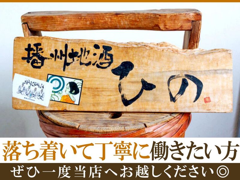 仕事内容 ≪週1~・1日3時間~OK!≫ ≪主婦パート・Wワーク活躍中◎≫ ≪髪自由・ネイル・ピアスOK!≫ ================= ≪大人の空間でのホール業務をお任せ≫ ================= まずは ・お席のご案内 ・料理やドリンクの配膳 ・後片付け 等から 基本、ホールには メインスタッフが一人いるので、 簡単な仕事から始めていただけます。 お客様へグラスの置き方や 言葉がけなどのマナーは 先輩スタッフが丁寧にお教えします! また当店は 希望者には 「まかないあり」 「お酒の試飲あり」なので、 仕事に慣れてきたら、 ご自身が感じた味を 「このお酒はすっきりした感じでした」 「このお料理は私の一番のお気に入りです」 と、お客様に伝えてみましょう。 お酒が飲めない方でもOKです◎ 詳しい説明を求められた場合は オーナーにバトンタッチでOK! お酒の知識は不要です。 ======== ≪気になるQ&A≫ ======== ■Q.本当に時給1350円~ですか? ■A.本当です! 責任感を持って仕事をしていただける方 には、さらに高時給をご用意しています。 ■Q.昼間の仕事と両立できるか、 働きながらシフトを決めたいのですが よろしいでしょうか? ■A.大丈夫です!本業との兼ね合いで シフトに入っていただいてけっこうです。 ================ ≪当店について ちょっと詳しく≫ ================ 店内は酒蔵を彷彿するような 白壁と黒いカウンターが印象的。 テーブルとカウンターを合わせた お店です◎ 兵庫県の播州エリアを主に 兵庫五国、播州、摂津、丹波、但馬、 淡路の兵庫県内の銘酒から、 全国のレアものまで約150種類 の日本酒を扱っています。 肴は魚介料理を中心に、 その時々の旬の食材をご提供しています。 県内・県外問わず美食を求めて 多くのお客様がご来店されます。