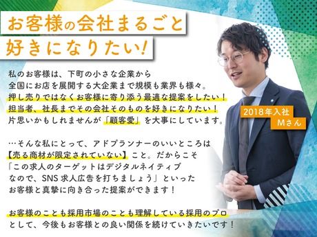 その他 友達と応募OK、職場見学可 【ブランド名】 アドプランナー株式会社 【事業内容】 求人広告