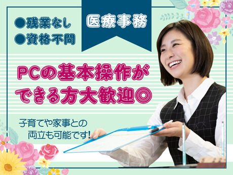 仕事内容 \お話し好きな方にも最適♪/接客や販売経験も活かせる◎入力作業は先輩が丁寧に教えます♪ 【 パソコン文字入力ができる方であれば経験不問! 】 前職で販売管理のためにExcelを少し使っていた方 一般事務としてフォーマットを使って請求書作成していた方 商品の仕入れ管理でPC入力をしていた方 趣味でパソコンに文字打ちをする機会がある方 など、何かしらでパソコンを使うことに 抵抗が無い方であれば医療事務経験は問いません◎ 経験年数も不問なので趣味程度…という方も大丈夫ですよ♪ デスクワークをしてみたい方を応援します! 【 業務内容 】 病院で事務業務をお願いします。 ■患者様受付対応 ■病棟にかかってくる電話の対応 ■PCへの文字入力 ■請求書作成 ■他、付随業務 【 医療事務経験がある方、ブランクがある方も歓迎 】 子育てが落ち着いたからフルタイム勤務にしたい という方も大歓迎です! 久々の医療事務だと不安なこともあると思いますが、 勘を取り戻すまで丁寧に教えていくのでご安心ください◎ 【勤務開始日の相談OK】 お1人につき1名のサポートスタッフがつき お仕事探しから働き始めた後までフォローします◎ 毎月面談している方もいらっしゃいますよ♪ 「スグ働きたい」「来月から」 「今の職場で賞与を貰ってから」 など、勤務開始日はあなたのタイミングでOK◎ 在職中の方もぜひご応募ください! 現地面接・オンライン面接OK◎ <YM_C2>