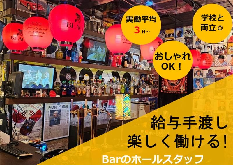 求めている人材 ◇学生、フリーター歓迎 ◇副業、未経験OK ◇留学生歓迎(要資格外活動許可書取得) ◇70、80年代の音楽が分かる方、楽しめる方もOK! ◇20~40代の女性活躍中! 様々な業界・業種(30代~50代のお客様中心)の方が訪れる、どこか懐かしい雰囲気のBARです! 飲食店でのバイト経験などは必要なし◎ お客様に元気に明るく対応できれば問題ありません。 お店ではライブイベントを行うこともあるので、音楽好きの方にもピッタリなお仕事です♪
