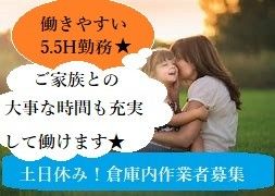 仕事内容 《倉庫内で検査作業》 主婦(夫)に人気のお仕事です! 自動車用ケーブル(配線)のサイズ、不具合がないか 台の上で検査をしていただきます。 出来上がったのをクルクル布を巻いて箱に入れて完成 ☆人気の扶養範囲内☆ 短時間のオシゴトです!! ~20代30代40代50代主婦(夫)の方活躍中~ ☆子育て世代活躍中☆ 9:00 朝礼 9:10~ それぞれのライン作業開始 10:30~10:45 休憩 12:15~13:00 昼休憩 14:40~14:50 休憩 15:30 退勤 ※終了時間14:30くらいまでならいいのに!って考えてる方は相談してみてください 【この求人は採用強化案件です】 [こんな人が活躍] 急な保育園の呼び出しなどにも 対応しますので、小さな お子様がいらっしゃる主婦の方に 非常に人気の職場です!