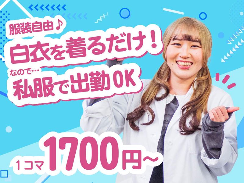 求めている人材 大学生・大卒以上の方 *バイトデビューもOK♪ 未経験歓迎!充実研修で安心!! 女性講師も多数活躍中!! 白衣着用で私服でも勤務OK! *服務規程有 *家庭教師含め同業他社との Wワークは不可 <✅ 大学生の先輩が大勢活躍中> 千葉大学・神田外語大学・ 順天堂大学をはじめ、日本大学・ 東洋大学・駒澤大学・専修大学など、 都内日東駒専以上の大学に 通う学生が多数在籍♪ 「同じ大学の先輩がいた!」 なんて声もよくあります◎ <✅ こんな方も歓迎!> 居酒屋・カフェ・アパレル・ コンビニなど、接客バイトの経験を 活かしたい方も大歓迎! 「初めて教育系の仕事に挑戦してみたい」 「接客は慣れてるけど、 次は“教える”経験がしてみたい」 そんな方にもピッタリのバイトです。