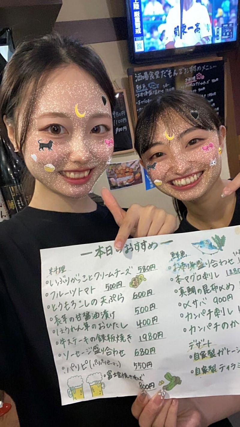仕事内容 ✨新着求人✨ ================ ✨八王子駅より駅徒歩4分 ✨10代・20代の女性スタッフ多数活躍中♪ ✨髪色・髪型・ピアス・ネイル自由◎ オシャレにかわいく働けます♪ ✨嬉しいまかない有♪ ================ 「酒場食堂・だもんで」にて ホールスタッフを募集!! 【仕事内容】 ✅お席へのご案内・お客様対応 ✅オーダー取り・商品の提供 ✅レジ対応・お会計対応 ✅テーブルの片付け・お席の準備 ✅店舗内清掃・衛生管理 などの接客に関する業務をお任せします などをお願いします! 気軽に寄ってもらえる楽しいお店を 目指しています! ―――――――――――――――★。・ インスタグラムも更新中♪ お店の雰囲気はこちらからチェック @damonde0690 ―――――――――――――――★。・ 【酒場食堂だもんでのご紹介】 熊本県産地直送の新鮮な馬刺しを メインに提供しており、 豊洲市場からの厳選した海鮮素材が お客様に大人気♪ 35席の地元の方で賑わうお店です。