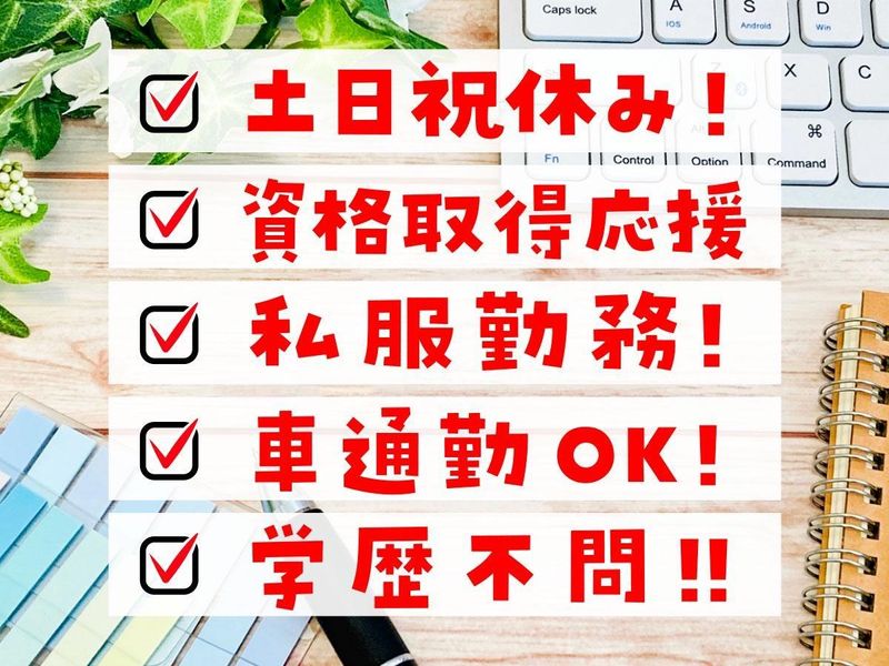 求めている人材 ・未経験大歓迎 ・経験者大歓迎 ・性別不問 ・学歴不問 ・20代30代活躍中 ◆要PCの基本スキル(タイピング程度) <あれば尚可> ・要PCの基本スキル(Excel、Word) ・総務、労務管理業務の経験 ・経理の実務経験 ・インボイス制度、電子帳簿保存法の経験 ・管理職の経験 __ \ 下記の方向いてます! / ・新しいことに挑戦することが好き ・わくわくした日常を過ごしたい ・コツコツ進める仕事の方が合っている ・人のサポートが好き ・プライベートも仕事も大切にしたい ・個性を大事に自由な服装で勤務したい ゆくゆくは、 「資格取得にチャレンジしたい」 「社内の他の仕事にチャレンジしたい」等 幅広くスキルアップしたいもOK◎ 弊社でも 常に業績拡大を図り、 ECサイトの新事業もスタート予定です! 自分の スキルアップのため・・・ やりがいのため・・・ 仕事を頑張る理由は問いませんが、 少しでもご興味頂いたのであれば 会社を通して、一緒に成長していきましょう♪