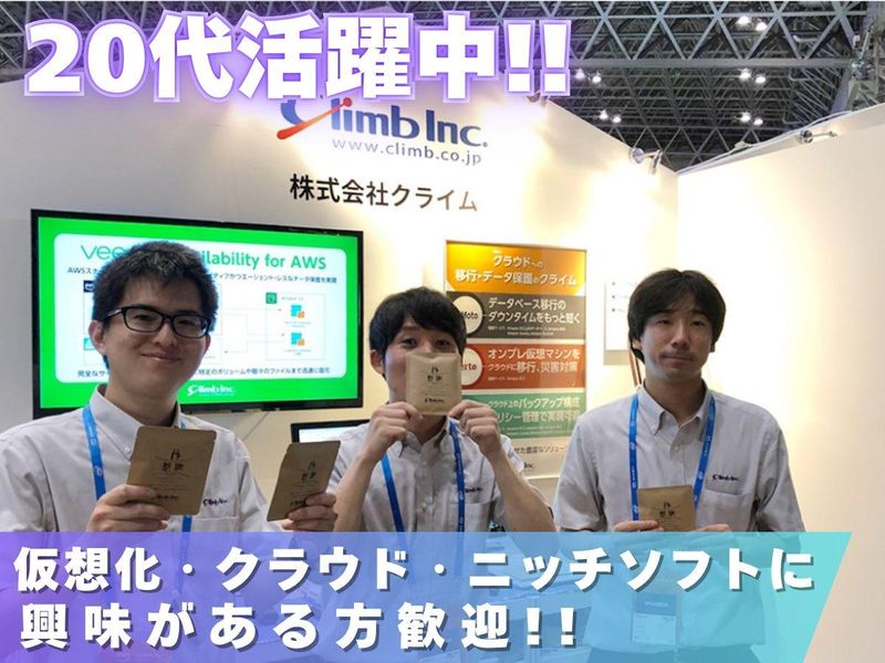 仕事内容 ▼▼▼ 求人のポイントはコチラ ▼▼▼ ✅国内IT業界の先駆者!30年以上の実績 ✅20代の男性スタッフを中心に活躍中! ✅自由度の高い提案で営業力と実践力を磨く ✅駅徒歩1分!通勤ストレスゼロで快適勤務 ✅年間休日120日以上&完全週休二日制 _/_/_/_/_/_/_/_/_/_/_/_/_/_/_/_/_/_/ ⭐仕事内容  ̄ ̄ ̄ ̄ ̄ ̄ 企業の大事なデータが、悪意のある 攻撃で使えなくなることがあります。 そんなときでも、あらかじめ作った コピーからすぐに復旧できるツールを 提案・販売します。 【具体的には…】 ⏩販売パートナーへの営業支援・販促活動 ⏩電話アプローチ・アポイント取得 ⏩製品プレゼン・デモンストレーション └顧客訪問して実施となります ⏩導入サポート・製品評価の支援 ⏩提案書の作成および提案実施 このツールがあれば、万が一データが 暗号化されても業務を早く再開できます。 提案やサポートはエンジニアと連携して 行います。 _/_/_/_/_/_/_/_/_/_/_/_/_/_/_/_/_/_/ ⭐創業41年の安定企業  ̄ ̄ ̄ ̄ ̄ ̄ ̄ ̄ ̄ ̄ ̄ 1984年の設立以来、 国内IT業界で30年以上、 確かな信頼と実績を築いてきた当社。 私たちの強みは、 日本市場にまだ存在しない 海外ITソフトを独自に発掘・導入し、 お客様の課題に合わせて最適な形で 提供できる点にあります。 社員一人ひとりが新しい製品を見つけ、 自ら提案・事業化に挑む文化が 根付いており、自分のアイデアを直接 ビジネスにつなげられる環境です。 これからも社名 「Climb(クライム)」のように、 夢や目標に向かって挑戦し続け、 国内IT業界に新たな価値を創造 していきます。 _/_/_/_/_/_/_/_/_/_/_/_/_/_/_/_/_/_/ ⭐当社についてのインタビュー!  ̄ ̄ ̄ ̄ ̄ ̄ ̄ ̄ ̄ ̄ ̄ ̄ ̄ ̄ ̄ ̄ Q. 入社のきっかけは?  ̄ ̄V ̄ ̄ ̄ ̄ ̄ ̄ ̄ ̄ 大学で情報を学んでいたこともあり、 これまでの知識や経験を活かせる仕事に 挑戦したいと思ったのがきっかけです。 また、仮想環境のソリューションに 以前から興味があり、最先端の技術に 触れながら成長できる点も魅力でした。 入社後は風通しの良い職場で、 先輩社員から気軽に相談できる環境。 会社自体も常に上昇志向で、 挑戦する姿勢を応援してくれるため、 自分のスキルを伸ばしながら 上を目指せると感じています。 Q. 仕事のやりがいは?  ̄ ̄V ̄ ̄ ̄ ̄ ̄ ̄ ̄ ̄ 課題に対して自分なりの解決策を提案し、 実際に成果として形になる瞬間に、 最もやりがいを感じます。 単なる作業ではなく、 提案や改善の一つひとつが お客様やプロジェクトの成功に つながることが嬉しいです。 _/_/_/_/_/_/_/_/_/_/_/_/_/_/_/_/_/_/