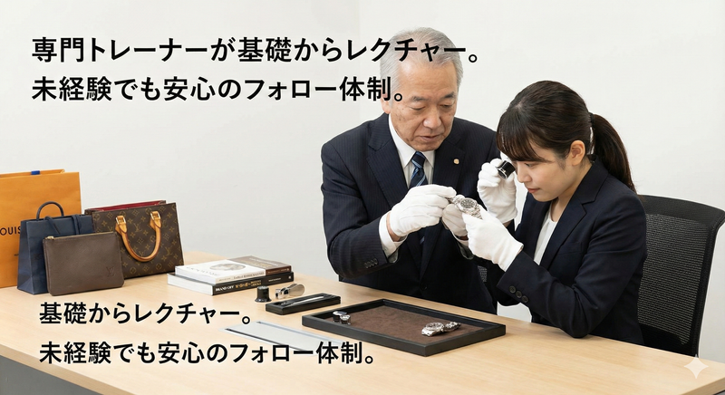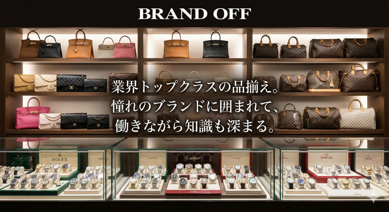 お仕事内容 「ブランドが好き」「専門スキルを身につけたい」方にピッタリ。 当社では、未経験から “真贋判定”と“査定”ができる人材 を育てています。 まずは販売から、研修を経て“買取デビュー”。 店舗で扱うブランド品数は 業界トップクラス です。 【STEP1】販売 接客・商品管理・ディスプレイなどを担当。 ブランド知識も自然と身につきます。 【STEP2】買取研修 専門トレーナーがつき、基礎から学べます。 真贋の見方 相場の捉え方 商品状態の評価 などを丁寧にレクチャー。 【STEP3】査定デビュー テストに合格すると、いよいよ買取カウンターへ。 未経験スタートでも多くのスタッフが半年~1年で合格しています。