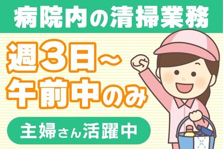 仕事内容 \ 午前中のみ★主婦さん活躍中の職場 / ◆コツコツできる簡単な清掃のお仕事 ◆お昼までだから家庭と両立しやすい♪ ◆週3日~◎午前中の身の短時間シフト ◆週5・6日しっかり働きたい方もOK ◆年齢不問!主婦・シニア活躍中! 【 適度に身体が動かせる簡単なお掃除 】 バス停「箕形」「東ヶ丘東」からすぐ! 病院内の清掃スタッフを募集しています♪ < 仕事内容 > □:共用部の拭き・掃き清掃 □:トイレ清掃 □:ごみ回収 など お仕事の流れはイチから丁寧に お教えするので安心してください。 あなたのスキルに応じて、 できることからスタートしましょう! 【 清掃業務が初めての方でもOKです 】 いつもの家事の延長感覚でOK◎ むずかしい作業はありません! 特殊な機械や洗剤の使用もなし! 初心者さんでもスグに覚えられるので 久しぶりのお仕事にもおすすめです★