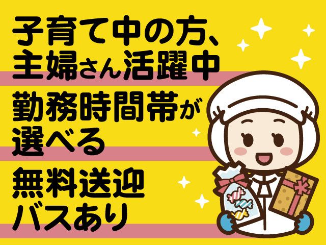 単純作業で未経験者も大活躍中!月収20万円以上可能!お菓子の製造補助作業!週4日~シフト相談OK