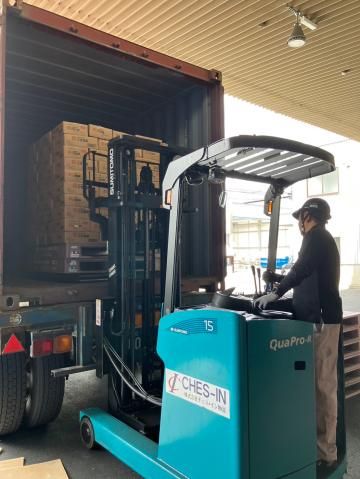 リーチリフトで家電の入出荷作業