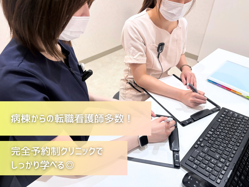 求めている人材 ★美容看護未経験者歓迎! ★ブランク歓迎&第二新卒歓迎! ★美容に興味のある方大歓迎! ★Wワーク希望の方もご応募OKです♪ 【*必須条件*】 ・看護師免許(准看護師免許でもOK) ・クリニックのSNSに顔出しできる方 ⇒美容の豆知識中心に発信しているので 頻繁に顔出しすることはありません! ・経験不問/学歴不問 ⇒美容看護経験者は優遇あり◎ 【*歓迎条件*】 ・美容に詳しくなりたい ・美容施術を受けたことがある ・看護師としてスキルアップしたい ・SNS運用に興味のある方 ・土日祝勤務ができる方(優遇) - ――ゆとりを持った働き方で 自分史上1番になりたい方へ―― 「業務やノルマに追われて疲れてしまった」 「夜勤なしで私生活を大事にしたい」 「残業せずメリハリつけた働き方がしたい」 などなど “看護師としての私”も“普段の私”も 大事にしたいという理由で 転職してきたスタッフ多数! 看護師として経験が浅い方も 無理なくスキルを磨けるうえに 美容の知識やSNS運用など 多様な知識も身につけられます。 産休・育休制度や復職もできるので 将来結婚や出産をお考えの方も ライフステージの変化に合わせ 働き続けることができます! キャリアも私生活も大事にしながら 看護師として安定して働けますよ★