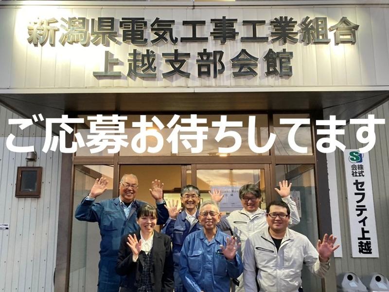 アピールポイント: ◎週休二日制(土日祝) ◎早出・残業ほとんどなし! ◎深夜勤務なし! ◎力仕事少なめの引込線工事だから、体への負担なく長く安心して勤務出来ます。 ◎電気工事経験者が多く転職してくる、人気のお仕事です。 スタッフ紹介 現在、30代1名、40代1名、50代以上1名、事務員1名 総勢4名です。 事務所には電気工事協同組合メンバーもおり、にぎやかです。 4月に入社したばかりの30代メンバーも活躍中! 後輩が入社するのを楽しみに待っています。 そんな私たちと一緒に、上越のライフラインに欠かせない電気の仕事をしてみませんか。
