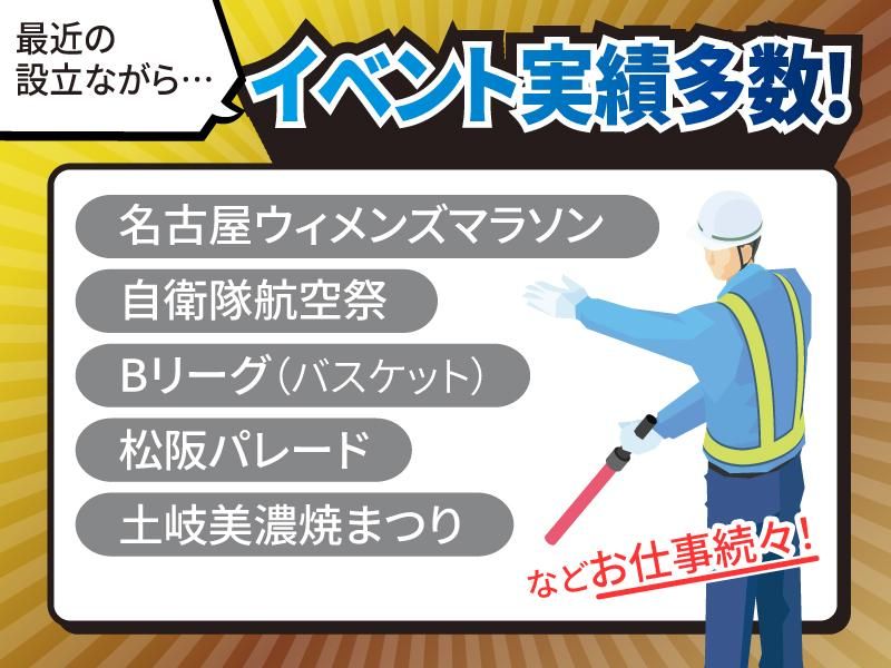 仕事内容 設立されたばかりの新しい警備会社です! スターティングメンバーとしてぜひご参加ください!! ★家電・家具付の寮あり(応相談) <幹部候補>として活躍してもらえるよう、 アナタの『向上心』や『意欲』を重視して採用を行います! 『心機一転、新しい環境と新しい仲間でスタートしたい』 『1から会社を創る一員になりたい』 そんな熱意ある方、お待ちしております! ◆ ◆ ◆ \警備のお仕事について/ 雑踏・交通誘導警備を主とした警備業務を行います。 現場は ・道路工事現場(電気工事やガス工事など)、建築現場等 ・各種イベント会場 など。 ※現場に出る前には事前に研修があり、警備業に関する基本的な知識や技術を学ぶので初めての方でも大丈夫です! ※各現場、1時間または1時間半毎に20~30分の休憩を実施中! \イベント実績多数あり!/ 『名古屋ウィメンズマラソン』 『自衛隊航空祭』 『Bリーグ(バスケット)』 『松阪パレード』 『土岐美濃焼まつり』 など、設立して間もないですがお仕事続々です! ◆ ◆ ◆ 明志警備という会社名は、 “自分の志を明らかにする” という思いをこめて名づけました。 これから社員となる皆さんと共に 明志グループの力強いイメージを つくっていけたらと思います。 ☆公式Instagramでも会社情報を発信中! https://www.instagram.com/meishi_keibi