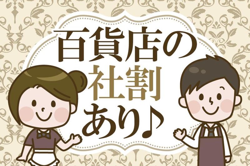 【保険制度】 雇用保険、労災保険、健康保険、厚生年金 待遇・福利厚生 【福利厚生】 ・交通費規定支給 ・百貨店社割あり(規定) ・社員食堂あり ・百貨店内に休憩室完備