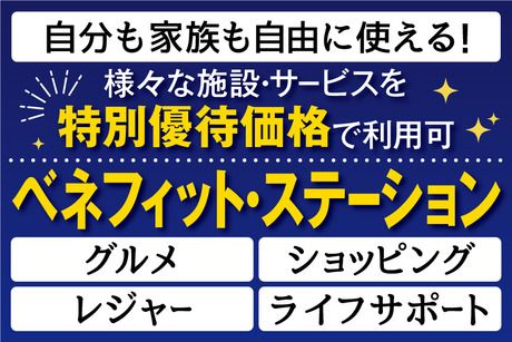 【保険制度】 雇用保険、労災保険、健康保険、厚生年金 待遇・福利厚生 【福利厚生】 ・社会保険完備 ・交通費全額支給 ・車通勤OK(規定有) ・バイク通勤OK ・有給休暇 ・制服貸与 ・食堂あり ・敷地内全面禁煙 ・結婚祝金、出産祝金、扶養こども手当、入学祝金、退職金制度などの福利厚生が充実(規定) ・紹介キャンペーン ※ご紹介くださった方1名につき5万円を進呈(規定) 【ベネフィット・ステーションの利用が可能】 ベネフィット・ステーションとは、 様々なシーンでご利用いただける 総合型福利厚生サービスです。 映画鑑賞やホテルディナー、宿泊施設 などの余暇・レジャー関連をはじめ、 日常で使えるフィットネスや 育児・介護支援、ライフサポートなど 約140万件以上の幅広いメニューを お得な価格で利用できます。 <サービス例> ・全国40,000以上の宿泊施設 ・全国30,000店舗以上の飲食店 ・全国約7,700ヶ所のスポーツクラブ など スタッフさんはもちろん、ご家族の方もお好きなだけ利用できます。