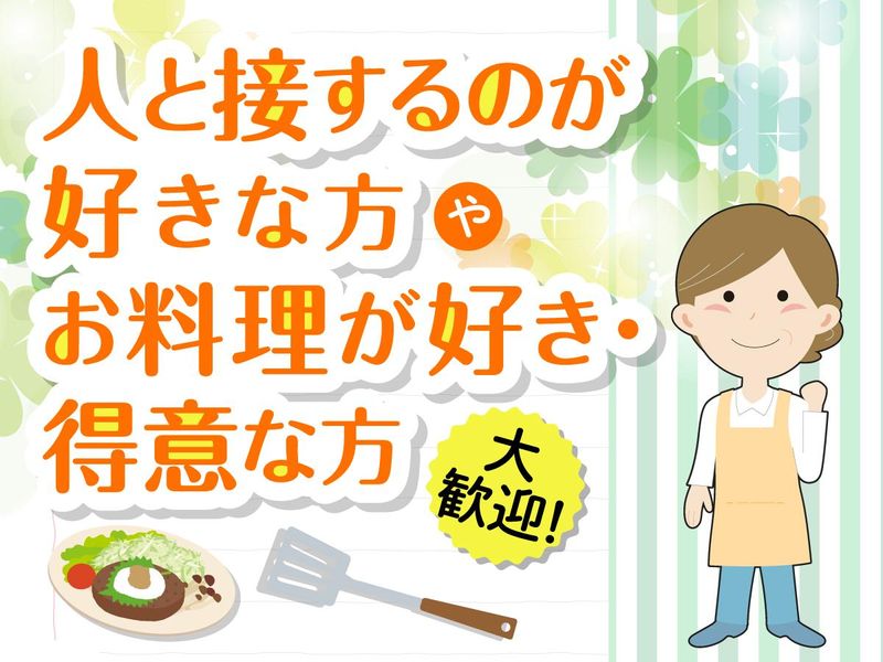 仕事内容 家庭料理で入居者を”おもてなし” →あなたの趣味・得意を活かしご活躍を♪ 主婦さん多数活躍中! 人と接するのが好きな方大歓迎です! 障がい福祉サービスで地域社会に 貢献できるお仕事です!! 施設入居者やstaffのみんなと、 楽しみながらバイトしましょう!! みんな優しい心の持ち主、 幅広い年代との付き合いの面白さを 実感しよう。 <人を支えるのは人> …そっと手を差し伸べる、 障害者福祉に携わりませんか! ムリなく貢献できる働き方を一緒に考え、 仕事を楽しみ”やりがい”実感する日々を 実現していきましょう!!