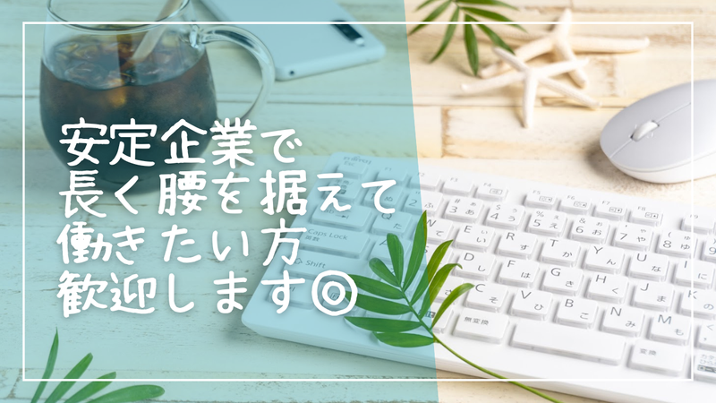 求めている人材 ・高卒以上 ・事務経験をお持ちの方 ・Excel、Wordの基本操作ができる方 ・会計入力などの実務経験がある方歓迎 ・電話応対、来客対応を含む 事務業務の経験がある方 ・正確かつ丁寧に業務を進められる方 ・長期で安定して勤務できる方 ※経理経験者は優遇いたします。 ※未経験の方も、基本的なPC操作ができればご応募可能です。