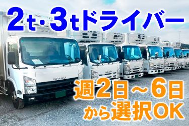 2t・3t冷蔵トラックドライバー募集! 週2日~6日から選択OK 60歳以上のシニアも活躍中!!