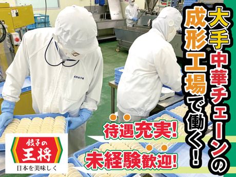 仕事内容 業務内容 「餃子の王将」自社工場で王将自慢の“餃子”製造補助。 材料投入/梱包/容器洗浄/清掃など お客様に“おいしい”を届けます。 初めての方もしっかりサポートします。 清掃業務もあるのでキレイ好きな方大歓迎♪ 王将のこだわり 王将では創業以来7つのこだわりを貫いています。 それは手作り調理、こだわりの餃子、オープンキッチン、オリジナリティであること、品質と価格、新鮮な食材、真心込めた接客、です。 これらの品質と信頼の土台を支えているのが、工場での製造工程です。 店舗で提供される「いつもの味」を守るため、私たちは見えないところでこだわり抜いています。 安心安全への取り組み 店舗へ配送する米、豚肉、鶏肉、野菜など、大半の食材は国産を使用しています。 また、全ての工場がセントラルキッチンと食材の配送拠点機能を併せ持っており 1日に餃子200万個、中華麺11万食以上の食材を加工する生産力を実現しています。 お客様に安心してお食事頂ける仕組み作り、食品管理を行っています。 工場スタッフの想い 私たちの作る餃子は、店舗のオリジナルメニューやランチセットに欠かせない中心メニュー。 店舗ごとに味付けや提供スタイルは違っても、ベースとなる餃子は、 どこでも変わらぬクオリティが求められます。 工場勤務は、直接お客様に会う機会はなくとも、 店舗の「おいしい!」の声を支える、誇れる仕事です。 【こんな方に♪】 飲食の店舗業務は難しいと感じる方も 工場での業務はコツコツ・モクモク作業が中心♪ 20代・30代・40代・50代・中高年・シニア多数活躍!