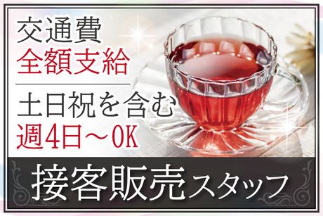 販売経験者募集★高時給1600円!紅茶が好きな方大歓迎♪土日祝含む週4日~のシフト交替制◎男女活躍中