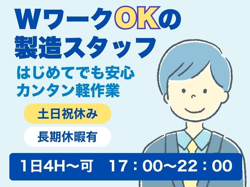 仕事内容 ⭐ワークバランスに合わせて働ける⭐ 【10:00~14:00】 子供が学校に通っているスキマ時間に働ける! 【17:00~22:00】 仕事終わりのWワークに最適! ワークバランスに合わせてスキマ時間を有効活用できます! ご希望の勤務時間がございましたらお気軽にご相談ください! ⭐ おすすめポイント ⭐ ・土日祝休み ・長期休暇有 ・激安自販機&お菓子販売あり ・かんたん軽作業 【仕事内容】  ̄ ̄ ̄ ̄ ̄ ̄ ̄ ̄ ̄ ̄ ̄ ̄ 冷凍食品の製造スタッフ ① パック詰め 機械から出てきた麺を計量し パックに詰める作業 ② 機械の掃除 製造に使用した機械を 洗浄機で洗う作業 作業は①と②のルーティンワーク! 難しい作業はないので1週間で仕事に慣れることができます! 【職場見学可能】  ̄ ̄ ̄ ̄ ̄ ̄ ̄ ̄ ̄ ̄ ̄ ̄ 入社前に職場見学可能で、 実際に働くイメージができてから 就業可能◎ 当日はMIC担当も同行します。 実際に働く職場を近くで見学可能! ≪当日の流れ≫ ①MIC担当と集合 ②工場見学 ③質問、感想の確認 ※60分程度です。