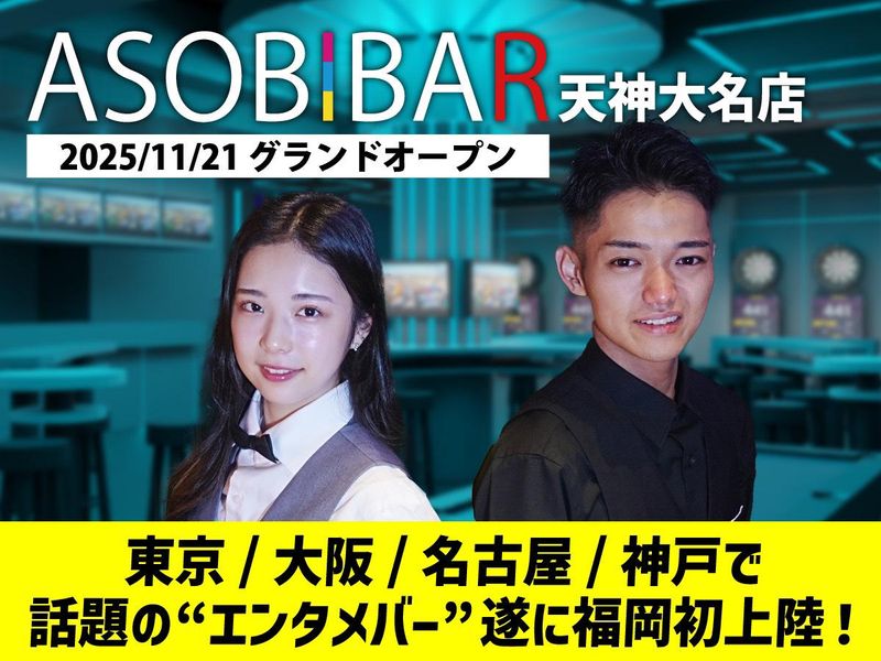求めている人材 【歓迎】 ・オープニングで働きたい方大歓迎! ・未経験者さん大歓迎!(初めてのバイトチャレンジも大応援!) ・これまでに接客や飲食店、サービス業界経験者さん、音楽フェスなどのイベントスタッフさん! …etc.エンタメ業界での勤務経験者の方も大歓迎! 【既存店舗ではこんなみなさんが活躍中!】 ・モデル、俳優、DJ、芸人の卵が活躍中! ・20代、30代の楽しい男女が多数活躍中! ・学生・フリーターさんたちが時間を有効活用しながら活躍中! ・掛け持ち・Wワーク・副業で稼ぐ仲間が活躍中! ・とにかくイベント大好き! ・盛り上げるのが大好きで自称、盛り上げ隊長の方! ・人とお話をするのが大好きな方! ・アソビバーをチェックしていた!いや、いったことが有る!または、とても興味がある方! ・楽しいことをしながら働きたい方! ・周りのみんなを楽しませるのが得意な方! ・ゲームやカラオケなど、遊ぶことが大好きな方! 【未経験からでも安心なシステムって?】 みんな初めは、未経験!そんなみなさんでも安心して、 お仕事ができるように社内研修をご用意しています。 仕事の「これってどうするの?」や「自己成長なども」なので、学生の方には就活で活かせるノウハウも! 一人ひとりのみなさんがチーム力やコミュニケーション力を身に着けて頂けるようにバックアップ! ・みんなが、楽しく成長できるプログラムでお迎えします! (分からないことや個人的なお悩みなどでも真剣に対応しますので、ご安心ください!) 【実は…】 お酒を飲まない!スタッフなんです。 (スタッフのみなさんは、飲酒はできません!ゴメンナサイ!でもソフトドリンクはOKで~す♪)