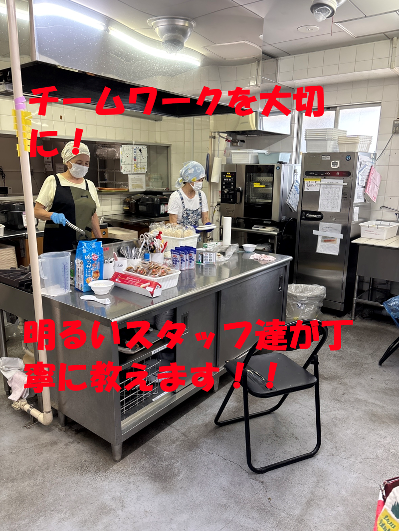 仕事内容: < 福祉施設のキッチンスタッフ募集 > << 業務拡大中につき、職員大募集! >> ▼主な業務内容 ・献立に沿った調理 ・料理の盛り付け(お皿に盛るだけなので未経験でも簡単!) ・食器類の準備、洗浄 ・厨房内の清掃 など 利用者様の「おいしかった~!」の一言がとっても嬉しい やりがいのあるお仕事です。 ··························································· 今から3分ください!こんな疑問に全部お答えします! ①経験が無くてもできる?どんなサポートがあるの? ②体力的な負担はどうなの?少ない? ③働く時間の柔軟性はどうなの? ④職場の雰囲気や年齢層はどう? ⑤どんな待遇があるの? ・・・・・・・・・・・・・・・・・・・・・・ ①経験が無くてもできる?どんなサポートがあるの? 未経験の方、初めてでも大丈夫! なぜかというと、食事づくりは冷凍惣菜を仕入れていて、 施設調理としては主に湯煎と自然解凍後の盛り付けがメイン。 なので、調理未経験の方でもすぐにできるからです! サポートとして メニューには全てレシピ(マニュアル)があり、 どのようにつくるか分かりやすい! その他、明るく丁寧なベテランスタッフもいますので、 つくり方をしっかりお教えします。 ちなみに、、家では作らないメニューなども、 調理経験豊富なスタッフからレシピを教えてもらえますよ♪ ・・・・・・・・・・・・・・・・・・・・・・ ②体力的な負担はどうなの?少ない? 利用者様の人数が平均35~40食程。 なので、鍋などの重い食器などは少ないです。 重労働とされる洗い場の仕事も、 食洗機・乾燥庫にかけるので 負担は少ないです! 配膳などは支援員が行いますので、 厨房スタッフは厨房内のみ。体力的負担は少ないと思います。 ・・・・・・・・・・・・・・・・・・・・・・ ③働く時間の柔軟性はどうなの? フルタイムの方も多いですが、時短勤務の方もいます。 特にお子様がいる方達は扶養内勤務の方もいますので、 お子様のお迎えや夕食作るまでの時間までには お家に戻りたい、、などのご相談は全然OKです! それぞれの生活スタイルや働き方がある中で柔軟に対応できます! ・・・・・・・・・・・・・・・・・・・・・・ ④職場の雰囲気や年齢層はどう? 雰囲気はまず明るいです!! 厨房直営事業なので、施設にいるスタッフは皆同じ仲間。 普段からコミュニケーションが取りやすいです。 男女比としては女性9に対し男性1という割合です。 主軸として女性スタッフに大いに活躍していただいています! 年齢は、30代~70代の方まで 様々な年齢の方が在籍していますので、 同年代の仲間が見つかりやすい環境だと思います。 ・・・・・・・・・・・・・・・・・・・・・・ ⑤どんな待遇があるの? 食事補助として、 1食100円でおいしいご飯が食べられます! 年2回!出勤状況に応じた昇給があります。 たくさん出勤、長く働くと自動的に昇給していく嬉しい制度です。 車・バイク通勤可!自転車でもOK! 社会保険(雇用保険、労災保険、健康保険、厚生年金)はもちろん完備! 東新井の人気カフェ・そらいろラウンジで、 従業員価格でメニューを食べられます! 料理研究家のレシピを元にしたサラダが大人気! 元パティシエによる手作りケーキなどホントに美味しい! 家族や友人など連れてこられた方も友人割引きもご用意してます。 ・・・・・・・・・・・・・・・・・・・・・・ 以上、3分説明でした! ··························································· *職場見学大歓迎! 不安なこと、聞きたいことは何でも質問してください。 施設の詳しい内容や様子は当社HPをご確認ください。 <東京空色HP> https://www.tokyo-sola.com/ ···························································