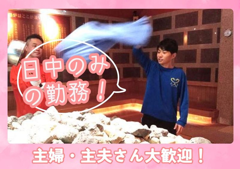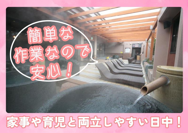仕事内容 ✨日中だけの勤務でOK!✨ ✨扶養内勤務もOK!✨ ✨主婦さん活躍中!✨ 8:30~18:00の間で1日4h~OK 家事・育児と両立しながら働けます♪ 未経験から安心スタート◎ ━━━━━━━━━━━━━━━━━ ⭐お仕事内容⭐ スパリゾートの館内業務をお任せします! ⏩お風呂場・脱衣所の清掃 ・脱衣所の清掃 ・アメニティ補充 ・マット交換 ・備品チェック ▶ご家庭のお掃除の延長感覚でできる お仕事です♪ ⏩レストランでのキッチン業務 ・定食屋丼物の調理 ・洗い物 ・簡単なキッチン補助 ❇。・♦・。❇。・♦・。❇。・♦・。❇。・♦・。❇。 \自分に合ったポジションで活躍できます!/ 希望や適性に合わせて 無理なく働けます◎ ❇。・♦・。❇。・♦・。❇。・♦・。❇。・♦・。❇。 \おすすめポイント/ ✅ 日中だけのシフトで働きやすい ✅ 週3日~OK!扶養内勤務も可能 ✅ 子どもが学校に行っている間に働ける ✅ 未経験スタートのスタッフ多数 ✅ お仕事後は温泉・岩盤浴でリフレッシュ♪ ❇。・♦・。❇。・♦・。❇。・♦・。❇。・♦・。❇。 \こんな方が活躍中/ ✅日中の空いた時間を有効活用したい方 ✅家事や育児と両立して働きたい方 ✅久しぶりのお仕事復帰を考えている方 ✅体を動かす仕事が好きな方 未経験から始めたスタッフも多数活躍中! 館内のお仕事なので、 季節や天候に左右されず 安定して働ける環境です。