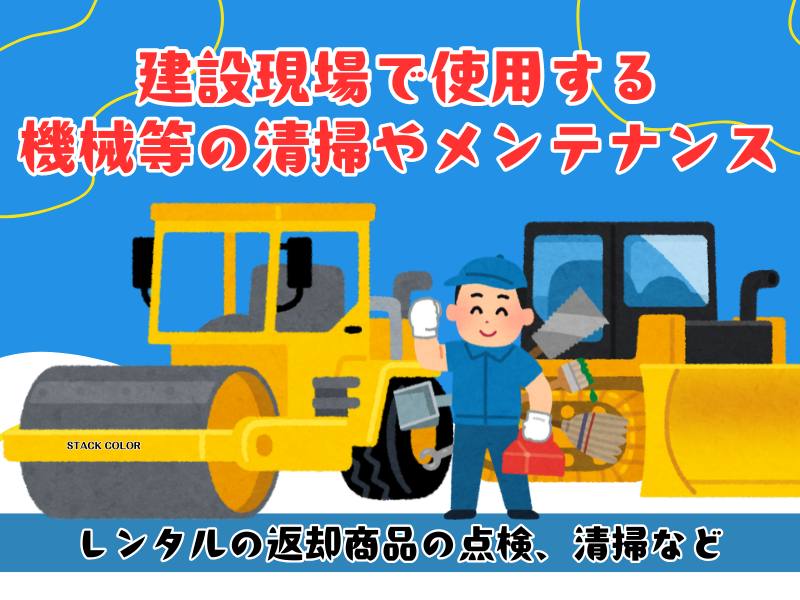 仕事内容 お急ぎの方はこちらにお電話ください! ▶080-3068-9375(担当携帯) SMSでの問い合わせもOKです◎ レンタルから帰ってきた重機や車輛、建設現場で使用する機械等の清掃、メンテナンスをお任せします! 重機の洗車や現場で使用する発電機の動作確認など簡単な業務からお願いしていきます⭐ ✨初めての方でも先輩スタッフがしっかりフォローしますので、安心してチャレンジできますよ! ✨レンタルの返却商品の点検、清掃などです!