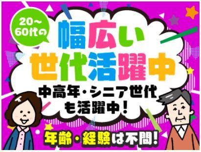 職場環境 20代・30代・40代・50代・60代の幅広い世代のスタッフが活躍中! 60歳以上・Wワーク・主婦・学生の方など幅広い属性の方が活躍中!
