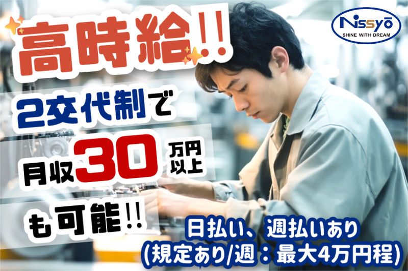 【仕事内容】 大手自動車工場で使用されている組立ロボットに使用される「変速機=人間でいう関節のような役割」を組み立てるお仕事です。 特別な資格や経験は必要ありません!丁寧なサポート体制で未経験の方も安心してスタートできます。 【PRポイント】 ✅カンタン・覚えやすい作業! 難しい作業ではないので、未経験者もすぐに活躍できます。 ✅快適な職場環境! 空調完備の快適な作業環境(室内は20度に管理) ✅長期勤務での募集です! 安定した環境で、腰を据えて働きたい方に最適な職場です。 【具体的なお仕事内容】 自動車部品の組立や検査を行っていただきます。 ・前工程から流れてきた部品を洗浄機器に投入 ・洗浄が終わった部品の仮組み ・仮組みされた部品の検査 ・検査後の組み立て作業 ■1日の流れ■ 朝礼後、各部署に分かれて4人1組のライン作業を行います。 ①部品の洗浄 ②製品の仮組み ③組立(内側) ④組立(外側) それぞれの工程を担当していただきます。 午前・午後に10分ずつの小休憩、昼休憩は45分あります。 ■職場環境■ 1週間ごとに昼勤・夜勤が交替するシフト制です。 部品は軽量〜中型サイズで、5~20kgと幅がありますが、 小型クレーンなどを使うため直接持ち上げることはありません。 20代~ミドル世代が活躍中のチーム作業中心の職場で、未経験の方も始めやすい環境です! 職場見学も可能なので、お気軽にお問い合わせください。 ============== こんな方にオススメ! ============== ✅大手の工場で長く働きたい方 ✅コツコツ・モクモク作業が好きな方 ✅初めてでも新しいことに挑戦したい方 一つでも当てはまる方、ぜひご応募ください! まずはお気軽にご連絡ください! あなたの応募を心よりお待ちしております! ============ 日商で働くメリット✨ ============ ✅働いてみて、自分に合わなければ職場転換OK 実際に職場で働いてみないと分からない事って、多いですよね。 人間関係、雰囲気、仕事内容、体力的な負担… 「合わないかも?」と思ったら、躊躇せず、コーディネーターに伝えてください。 あなたに合う職場が見つかる様、他の案件をご紹介します。 ✅キャリアアップ&チェンジも可能 当社の営業所内の営業や管理職へのキャリアチェンジの道もあります。 あなたの適正や得意な事、希望を考慮し、やりがいを持って長く安定して働ける様、全力でサポートします! 【求人ID-YKI】