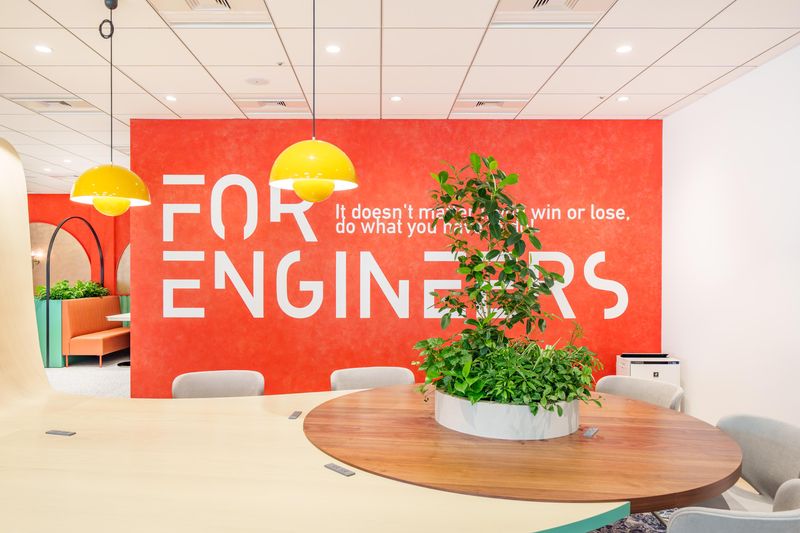 職場環境 2024年には本社を東京駅直結の丸の内ブリックスクエアへ移転!個性的なモニュメントを使って内装にこだわったり、フリーアドレス制を導入したりして、オシャレで快適な空間をカタチにしています。