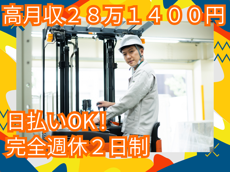 仕事内容 ✅高時給1600円✨日払いOK ✨空調完備で年中快適作業✨ ✅月28.14万可×飲料・雑貨倉庫 ✨フォーク+軽作業で飽きなし✨ ✅車通勤OK♪無料Pあり 飲料・雑貨(ジップロック・ラップなど)を扱う倉庫でのお仕事! 【お任せする作業】 リーチフォークリフトでの飲料・雑貨の入出荷 手作業での積み替え・入出荷作業 ※作業割合はフォーク7割、軽作業3割ほど。 体を動かしながら働けるので、 同じ作業ばかりで飽きることはありません。 高時給1600円&月収28.14万円可能、 残業代含め全額日払いOKで、急な出費にも対応できます。 【アピールポイント】 社会保険完備(健康・厚生・雇用・労災)で安心勤務 車・バイク・自転車通勤OK&無料駐車場あり 日払い・週払い対応(規定あり)