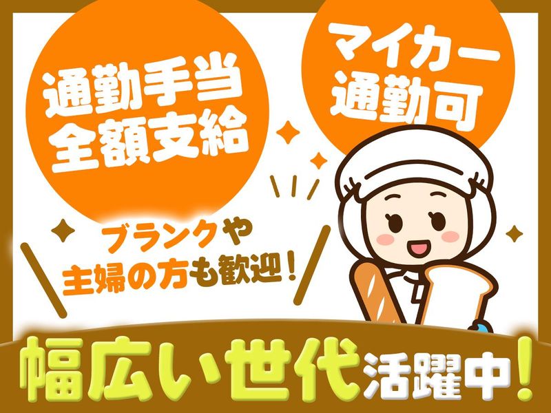 求めている人材 ★未経験歓迎(ほとんどが未経験スタート!) ★学生・フリーター・主婦(夫)歓迎 ★ブランクOK/久しぶりの仕事復帰も応援 ★しっかり働きたい方も歓迎(フルタイムもOK) \こんな方にピッタリ!/ ・パンが好き/食に関わる仕事がしたい方 ・コツコツ作業やモクモク作業が好きな方 ・チームで協力しながら働きたい方 ・安定して長く働ける職場を探している方 \未経験でも安心してください!/ 実際に働いているスタッフのほとんどが未経験スタート。 最初は「材料を量る」「並べる」などカンタンな作業からお任せします! 先輩がそばで教えるので、初めての方も安心です◎ \こんなスタッフが活躍中!/ 10代~40代まで幅広い年代が活躍中! 学生・主婦(夫)・フリーターなど、 それぞれのライフスタイルに合わせて働いています♪