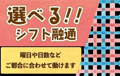 シフト制 勤務時間 【勤務期間】 即日 ~ 長期勤務歓迎! ★その他での開始希望も まずはご相談ください** 【勤務時間】 (1)07:00~16:00 (2)08:00~17:00 (3)11:00~20:00 (4)13:00~22:00 (実働7~8時間/休憩60分) ★(1)~(4)いずれかの固定勤務でOK! 【研修期間】 ・9:00~18:00 (実働8時間/休憩60分) ・約1か月半 ・週5日勤務 【勤務日数】 ・月~日 / 週5日勤務 ※シフト制 ★希望休などの取得相談もOK! お気軽にご希望をお聞かせください! ※時間外労働:有(月平均時間外労働 10時間程度)