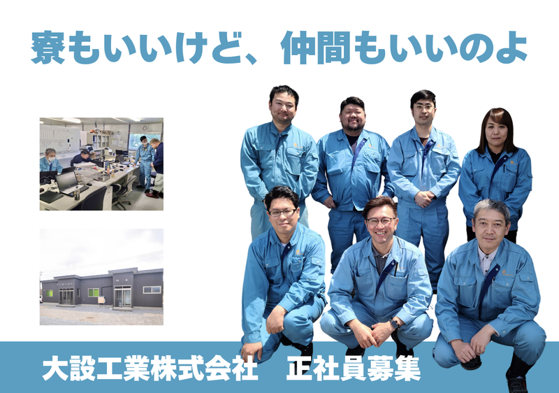 求めている人材 ⭐UIJターン歓迎! ▶「地元で安定してはたらきたい」 ▶「県外で一から再チャレンジしたい」 ▶「家族を支えるために戻りたい」…など、 理由も様々!こうした仲間が多いので何かあったら相談できるのも心強いです! º‧┈┈┈┈┈┈┈┈┈┈┈┈┈┈┈┈┈┈‧º ✅未経験者歓迎!学歴不問 ✅フリーター歓迎 ✅要普通免許(AT限定OK) ✅焦らずコツコツ学べる方 ✅安全ルールを守れる方 ✅体を動かすのが好きな方 º‧┈┈┈┈┈┈┈┈┈┈┈┈┈┈┈┈┈┈‧º 【こんな方を歓迎します】 ●正社員として、安定した環境で働きたい方 ●未経験から新しい仕事にチャレンジしてみたい方 ●道具の名前から覚えるつもりで、素直に学べる方 ●仲間と声をかけ合いながら働くのが好きな方 ●安全確認や段取りをコツコツ積み上げていける方 ●「人の役に立っている」と感じながら働きたい方 ●青森で、仕事も暮らしも大事にしたい方 ●外で体を動かす仕事が自分に向いていると感じている方 º‧┈┈┈┈┈┈┈┈┈┈┈┈┈┈┈┈┈┈‧º ╭━━━━━━━━━━━╮ スタッフインタビュー ╰━━━━━━━━━━━╯ <Oさん> 昔は研修一週間くらいで、あとは現場で覚えるのが普通でした。でも今は現場の要求が高くなっていて、会社として教育に力を入れる流れが強くなっています。 特別教育や技能教育も早い段階で取り切るようになり、二年目には独り立ちできる育成の設計をしています。安全や手順を知らないまま現場に出ることはさせない、という考えを現場として大切にしているからです。 若手が入ってきたことで現場が変わり始めたとも感じます。教わる側だったベテランが伝える側に回る。その動きが自然に増えていくと、技術継承の文化が動き出します。 資格は現場で必要な知識と動きを理解するための共通言語。だから会社が順番を作り、本人が迷わなくていい環境にしています。 人が育つことが会社の力になる。現場の誰もが、そこを大切にしています。 º‧┈┈┈┈┈┈┈┈┈┈┈┈┈┈┈┈┈┈‧º 【大設工業株式会社について】 大設工業は1955年の創業以来、発電所設備の据付・保守を軸に日本のエネルギーインフラを支えてきた会社です。 水力、火力、原子力へと現場の主役が変わっても、社会の毎日を止めないために現場で確実に設備を動かし続ける役割を担ってきました。近年は福島第一原発の安定化、廃炉支援、復興に向けた設備工事や保守を通じ、地域と社会の未来を前へ進める仕事へ深く関わっています。 現場の最後を動かすのは人。だから私たちは安全と技術の積み上げを最優先にし、育成と技術継承を会社の未来として大切にしています。 未経験で入社し、資格と経験を順番に積み上げて数年で所長として現場を任される仲間もいる環境です。 未経験から技術者へ育つ道筋を整え、あなたを迎えます。 年齢の条件と理由:あり(例外事由3号のイ・44歳未満(長期勤続によるキャリア形成のため))