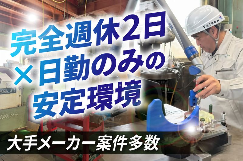 【仕事内容】 国内有数の自動車メーカーなど大手クライアントから新型車開発に必要な試作や設備製作を任され、30年以上、厚い信頼を築いてきた当社。 最近話題の最新車の製造にも携わっており、最先端の開発現場を支えています。 現在、さらなる品質向上と生産体制の強化を見据え、測定や組付けを行う製造作業員、および機械オペレーターを新たに募集します。 経験者の方は即戦力として、大型案件に関わるチャンス。自分のスキルをさらに高め、難易度の高いプロジェクトに挑戦したい方に最適な環境です。 【タイコーのおすすめPoint】 ・日勤のみだから家族や健康を大切にできる ・会員制リゾートでプライベートも楽しめる ・入社すぐに有給休暇を付与。最大40日保有 ■具体的なお仕事内容 国内外有数の自動車メーカーの新型車開発に関わり、治具や工具の製作から車検設備の測定・据付までを一貫して担当。これまでの経験と技術を存分に発揮してください。 ・試作車両の組付け用治具、工具の製作 ・車検設備や工場設備の製作、納品、据付 ・法令に基づく設備測定作業 ・自社加工機を使った部品加工、外注手配や調整 ・組付け方法の検討、現場での取付作業補助 ================== その技術で、新しい時代を切り拓く ================== 国内外のメーカーが挑む新型車の開発現場。ここには、技術者として次の成長をつかむ機会があります。 手がけた設備が動き出し、新しい車両の精度を支える。その瞬間に感じる達成感は格別。経験を積むほどに、自分の技術が確実に広がっていきます。 技術を追求し続けたい人にこそふさわしい環境。技術者として新たなキャリアを描きたい方に、最適な舞台です。 ================== ともに、次の挑戦へ進みませんか。 ================== 新型車開発の舞台裏。そこには、まだ誰も形にしていない部品や設備と向き合う、挑戦的な仕事があります。 株式会社タイコーは、治具・工具の製作から設備の据付・測定まで一貫して担い、経験者の技術と判断力を武器に開発現場をリードしてきました。 トヨタをはじめ多くのメーカーから寄せられる信頼が、高い技術力への答えです。30年以上にわたる挑戦の歴史が築いた信頼は揺るぎないもの。 あなたも私たちとともに、次の挑戦へ進みませんか。 ================ 自分のペースで、将来を描く ================ 「安定して、でも成長も諦めたくない」。そんなあなたにぴったりの環境があります。 仕事も自分の時間も無理なく両立できます。昇給や賞与、各種手当など待遇が充実しており、有給休暇も取得しやすい環境です。 リゾート優待などの福利厚生も整っており、さらに資格取得支援制度を活用すればスキルアップも可能です。 これまでの経験を活かして、落ち着いて長く働ける――そんな職場です。安心して、自分のペースで未来を描いていけます。 【求人ID-BRS】