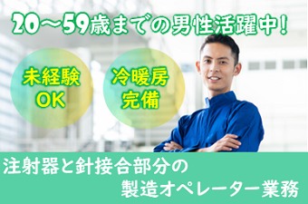 注射器と針接合部分の製造オペレーター業務|2交替|立ち作業|寮完備