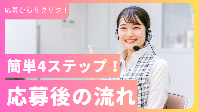 選考プロセス 【応募からすぐ爆速対応!】 応募後、最短2時間後には 面談可能!お仕事によっては スピード採用可能なお仕事も! ※応募後、「0120」もしくは「050」から 始まる番号よりご連絡させていただきます。 kst101-99(sjky)