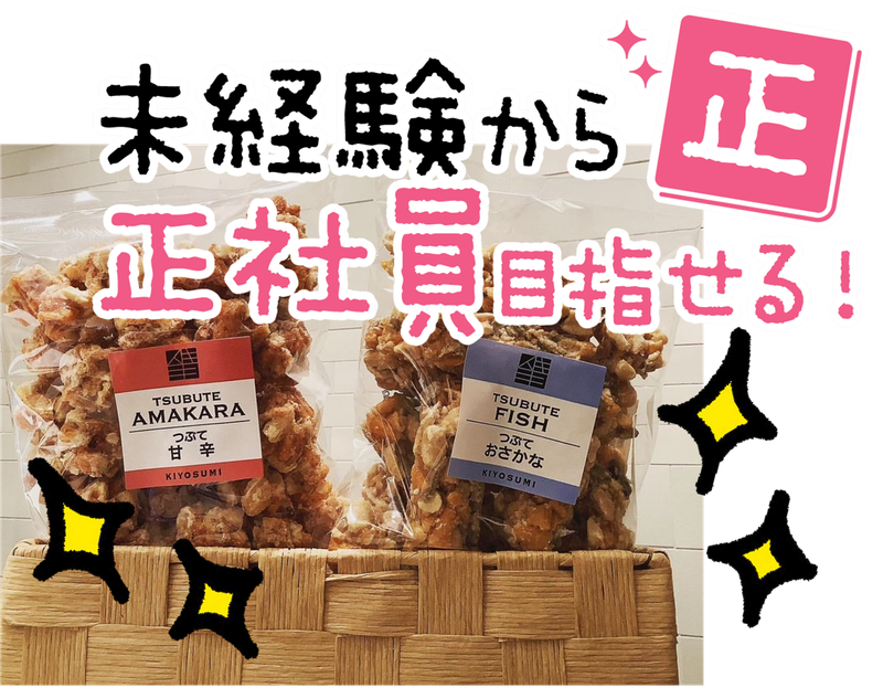 仕事内容 ■■■■■■■■■■■■■■■■■ キヨスミ製菓 浅草仲見世店 東京都台東区浅草1丁目37−1 ・東京メトロ銀座線 浅草駅徒歩3分 ・都営浅草線 浅草駅A4出口徒歩3分 ・東武伊勢崎線 浅草駅徒歩3分 ・つくばエクスプレス 浅草駅徒歩10分 ■■■■■■■■■■■■■■■■■ 浅草駅 徒歩3分の直営店で販売職として働く接客スタッフを大募集! 自社工場で製造したお菓子を、浅草の直営店で販売するお仕事です。 店舗販売の他に、ゆくゆくはアルバイトスタッフマネジメントやパートスタッフ指導もお任せします。 スタッフの皆さんが成長できる職場を提供し、キャリアパスの選択肢や社員研修を通じて、スキルアップのチャンスも。 販売経験不問で、未経験歓迎なので初めての方でも安心してスタートできます♪ 和菓子の販売やケーキ・テイクアウト専門店などの販売に興味がある方、 接客・販売・飲食・サービス業などでの接客経験がある方なら一層歓迎! 土地柄、海外のお客様が多く訪れるので、英語が話せる!中国語が話せる!韓国語が話せる!などお持ちの語学力を活かしたい方にもオススメ! 温かい職場環境と、福利厚生充実のサポート、手当支給なども整っており、安心して働ける環境が整えてお待ちしています! ~“心のなごむお菓子づくり”が企業理念~ 例えばお菓子の「販売」をする時、 どうやって作られているか知っていれば、 より深い知識を持って質の高い接客ができるでしょう。 キヨスミ製菓は、 ”やりたい事の為に学ぶ” のではなく、 ”学んだ事からやりたい事を実現する” を尊重します。 もうすぐ私たちは、創業100年の節目。 そこで、次世代の当社を担うコアメンバーとして 新たな社員を募集する事になりました。 <社員インタビュー> 「家が近いから」という理由だけで短期募集で働いたのが入社のキッカケ。 短期なのにすごく良くしてくれて、居心地が良くて気づけば入社して10年以上経っていました(笑) 製造を長く担当していましたが、今年から採用担当に。 不安ばかりですが、働いてる仲間がもっと働きやすくなったらと思い、やってみようと思えました。 入社12年目 人事 女性