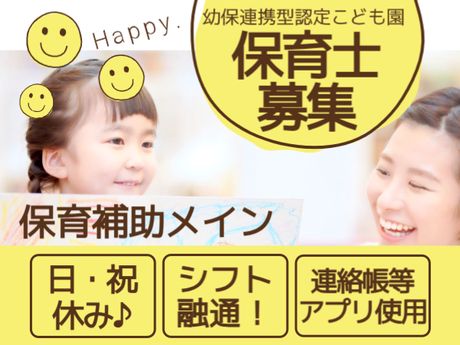 定員108名幼保連携型認定こども園で働く保育士さん/保育補助