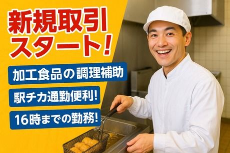 仕事内容 ■加工食品(揚げ物や野菜など)の加工作業スタッフ募集! 【仕事内容】 加工食品の調理補助のお仕事をお任せします。 (1)食材などを揚げる作業 (2)野菜などを調理する作業 その他、付随する軽作業 難しい作業は一切なくシンプルです! 未経験者や派遣が初めての方もスグに慣れて頂けますよ! 【この仕事の魅力】 ・体を動かしながら働けるので、運動不足解消にもピッタリ! ・コツコツと進める作業が得意な方に向いている! ・難しい作業はなく、未経験でもすぐに覚えられる! ・幅広い年代の方が活躍中です。 ・駅から徒歩1分、通勤時間が少しでも短縮できるのはいいですよね(*^^*)
