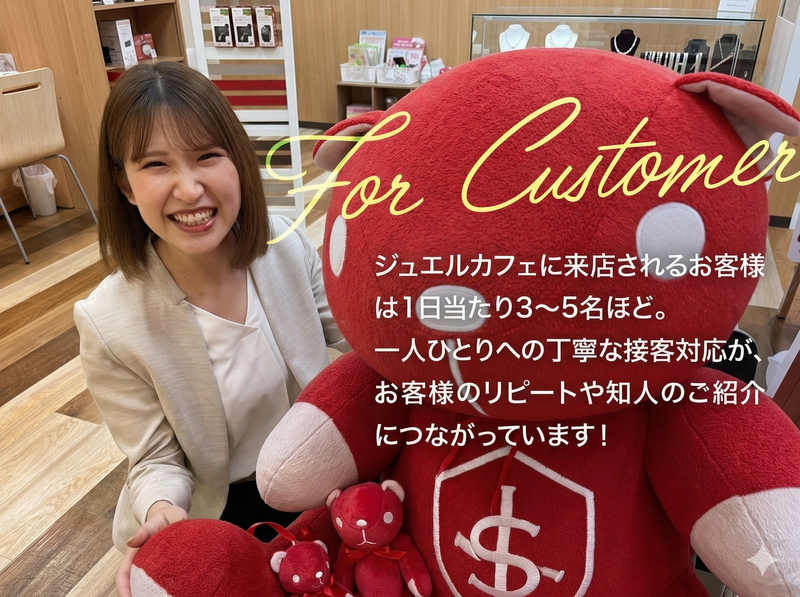 仕事内容: ■仕事内容 ノルマなし!店舗にて、査定・接客および店舗運営をお任せします。 座りながらの接客が中心なので、丁寧な接客ができる環境です。 具体的には * カウンター越しの受付・接客(座って対応) * ブランド品・ジュエリー・貴金属などの真贋/査定(マニュアルあり) * 買取成立後の手続き * 集客企画(店内POP、キャンペーン、SNSなど)※店舗ごとに工夫OK * スタッフ育成、簡単な店舗管理業務 など ■接客スタイル \一人ひとりに寄り添う“ゆとり接客”/ 買取店は頻繁に来店する場所ではないからこそ、 「次もお願いしたい」と思っていただける接客を大切にしています。 * 1日あたりの接客数は 3〜5名程度で、慌ただしさ少なめ * お買い物ついでに来店される方が多く、落ち着いた雰囲気 * 査定中はお電話でお呼びするなど、柔軟に対応できます ■未経験でも安心 「ブランド品の知識がない…」という方も大丈夫。 研修+OJT+査定マニュアル完備で、基礎から身につけられます。 入社後は、受付〜査定〜買取までの流れを少しずつ覚えていきましょう。 店舗の工夫も楽しめる(女性層に刺さりやすい) ジュエルカフェには、ドリンクやお茶菓子を用意したカフェスペースがあります。 本・雑誌・お菓子など、店舗ごとに工夫できるので、 「お客様が居心地よく過ごせる空間づくり」にあなたのアイデアが活かせます。 ■配属先・体制 1店舗あたり2名体制が基本。 育成に力を入れているので、アルバイトスタッフも活躍できる仕組みが整っています。 少人数でも回せる体制があるため、バタバタ追われる接客になりにくい環境です。 ■キャリア 国内外で出店を続けているため、チャンスも豊富。 入社1〜2年でサブマネージャー昇格実績もあり、 店舗統括・海外・本部(人事など)など、多彩なキャリアを目指せます。