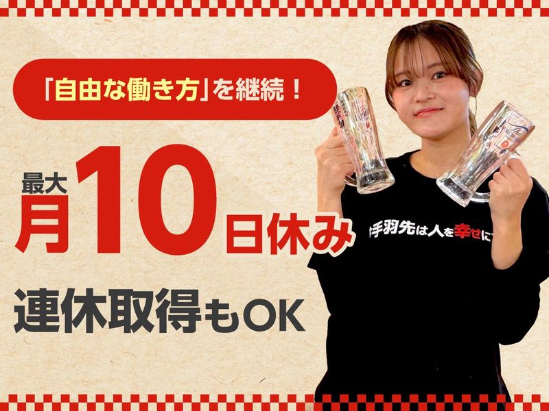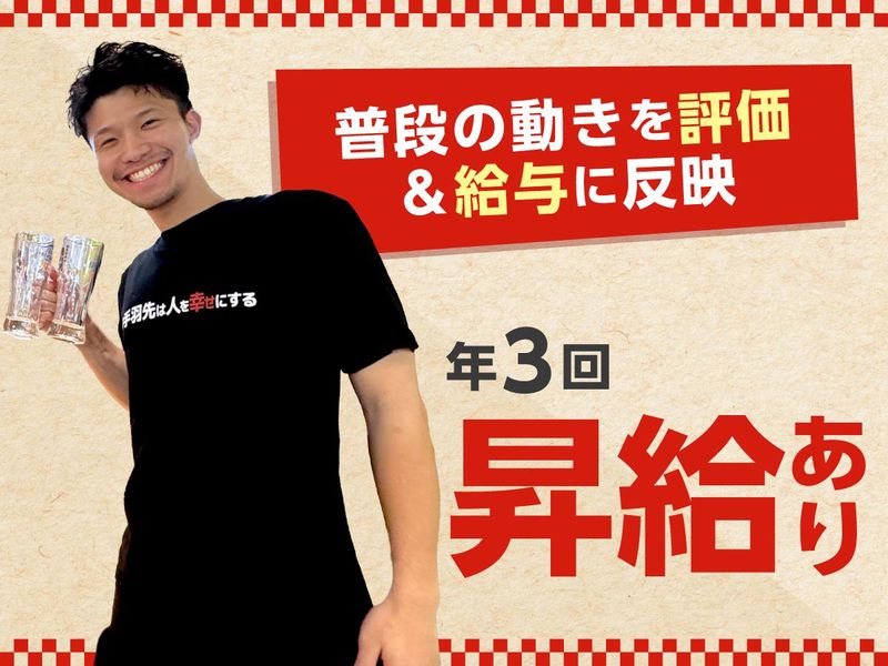 仕事内容 「ずっと今のままでいいのかな」 …そんな不安、ここで終わりにしませんか? 「正社員になりたいけど、 自由がなくなるのはイヤ」 「フリーターの自分って ちゃんと評価してもらえるのかな」 こんな風に思ったことはないですか? “これまで通り”のあなたのままで、 働き方は大きく変わらずに。 そして、これまで頑張ってきた 時間も経験も、 決してムダにしないように。 全国に『酔っ手羽』を展開するS.H.N株式会社は、 今までやってきたことを評価して、 あなたを「正社員」として迎えます!  ̄ ̄ ̄ ̄ ̄ ̄ ̄ ̄ ̄ ̄ ̄ ̄ ̄ ̄ ̄ ̄ ̄ ̄ ̄ ✅「正社員=休めない」はもう古い! 「自由な働き方」は、正社員でも同じ。 当社なら、月6〜10日の間で、 【自分で】休日数を選択可能です! 6日休みでガッツリ稼ぐ人もいれば、 10日休んで趣味優先の人もいます。 もちろん有給取得だって当たり前。 連休もOKです。 “ちゃんと休める”からこそ、 仕事にも100%の力で向き合えます! ✅「頑張り」は給与に反映 ・忙しくても手を抜かない ・周りを見て動く ・新人に声をかける ・ドリンクもホールも どっちも回す こういうこと、 今まで普通にやってきていませんか? こんな“当たり前”のことも 当社では評価の対象! もちろん評価は、 年3回ある【昇給チャンス】で 給与にしっかり反映。 ちゃんと変わっていく実感があります。 実際に未経験で入社した後、 コツコツ続けて給与アップした人も! 数字だけじゃなく、 “普段の動き”も見ている会社です。  ̄ ̄ ̄ ̄ ̄ ̄ ̄ ̄ ̄ ̄ ̄ ̄ ̄ ̄ ̄ ̄ ̄ ̄ ̄ ■仕事内容 ✅お客様のご案内 ✅オーダー対応 ✅料理・ドリンクの提供 ✅簡単な調理・盛り付け ✅片付け・清掃 など まずはお客様のご案内やオーダー対応など、 できることからお任せします。 「包丁を握ったことがない」 「接客は初めて挑戦する」 なんて先輩たちも、 今では店舗を支える中心メンバー。 一歩ずつ成長していきましょう! ■「酔っ手羽」とは? 昭和レトロな懐かしさと、 現代的な活気が絶妙に混ざり合った 独自の空間。 それが「酔っ手羽(よってば)」の 大きな特徴です。 マニュアル通りの無機質な接客ではなく 目の前のお客様を笑顔にするための 「遊び心」を大切にする社風だからこそ、 スタッフ一人ひとりの個性が お店の味になります。 そんな活気ある現場で、 あなた自身の個性を活かしながら、 お客様と一緒に最高にハッピーな空間を 作り上げていきましょう。 ■仕事も、遊びも、全力で! 忙しい時間帯は、自然と 声をかけ合いながら回しています。 困っている人がいたら フォローするのが当たり前! 一人で抱え込むことはありません。 みんなで全力で頑張ったら 年に一度の社員旅行へ! 毎年沖縄に行って 海やBBQなどを楽しんでいます。 普段は真剣に仕事をして、 遊ぶときは思い切り遊ぶ! だからこそ、 「このメンバーと、また来たい!」 「来年も行くために、頑張ろう!」 そう思える関係性が、 自然とできています。  ̄ ̄ ̄ ̄ ̄ ̄ ̄ ̄ ̄ ̄ ̄ ̄ ̄ ̄ ̄ ̄ ̄ ̄ ̄ 未経験でも、自分に自信がなくてもOK! ✅頑張りが評価されて、 給与に反映される ✅休みもしっかりある ✅チャンスが多い ✅仕事も人生も楽しめる そんな環境で、 新しいスタートを切りませんか?  ̄ ̄ ̄ ̄ ̄ ̄ ̄ ̄ ̄ ̄ ̄ ̄ ̄ ̄ ̄ ̄ ̄ ̄ ̄ <<S.H.Nで働くメリット>> ✅ピアス・染髪・ネイル自由の正社員! ✅全国600店舗展開の安定成長企業◎ ✅住宅手当・まかないなど福利厚生充実♪ ■充実の福利厚生でバックアップ♪ ✅昇給年3回 ✅賞与年2回 ✅インセンティブ制度 ✅月最大10日休み ✅引越手当(1律10万円)※規定あり ✅住宅手当(1律2万円支給)※規定あり ✅社内レクリエーション ✅独立支援制度 など ■キャリアの“詰まり”がない S.H.Nは、全国に続々と 新店を展開する成長企業! 今年の出店計画は30店舗以上です。 新しいお店ができる = 新しいポジションが生まれる = チャンスが増える! 未経験入社3年で店長になった社員も! 「年齢」や「社歴」よりも、 行動した人にチャンスが回ります。 ■実力に応じてキャリアアップ 店舗運営を一通りマスター、その後は… 実力を正当に評価して昇格・昇給に反映! ◇副店長:月給33万円~35万7000円 ◇店長候補:月給36万円~38万円 ◇店長:月給40万円~ ◇エリアマネージャー:月給45万円~50万円  ̄ ̄ ̄ ̄ ̄ ̄ ̄ ̄ ̄ ̄ ̄ ̄ ̄ ̄ ̄ ̄ ̄ ̄ ̄ ⭐いきなり正社員が不安な方は、 1週間の「お試し体験入社(時給制)」から 始めることも可能です。 まずは一度、あなたのこれからのことを お話ししませんか?