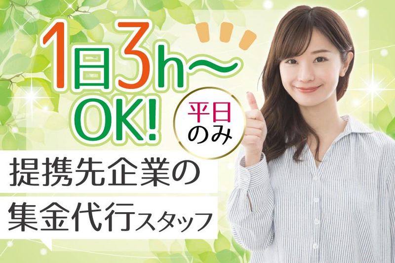 仕事内容 \平日のみ!月4日~・1日3h~勤務!/ 柔軟な働き方に対応!急なお休みもOK 未経験・ブランク歓迎◎件数ノルマなし♪ ―――――――――――――――――― 提携先企業の集金代行業務をお願いします。 <具体的には…> ◆端末に表示された訪問先で集金 ◆お客様が不在の場合は不在通知をポスト投函 ※不在先への再訪問は2ヶ月以後 <集金エリア> 西区、中央区、浪速区 ★自転車で回るスタッフ多数! 適度な運動にもなるので 働きながら健康になれますよ♪ ―――――――――――――――――― ✅扶養内にも最適! 平日のみ・月に4日以上・1日3h~と ライフスタイルに合わせた勤務が可能! 自由度が高く、 「今週は雨続きだから来週にまとめて活動」 「子どもの急な発熱で今日はお休み」 といった変更もOKです◎